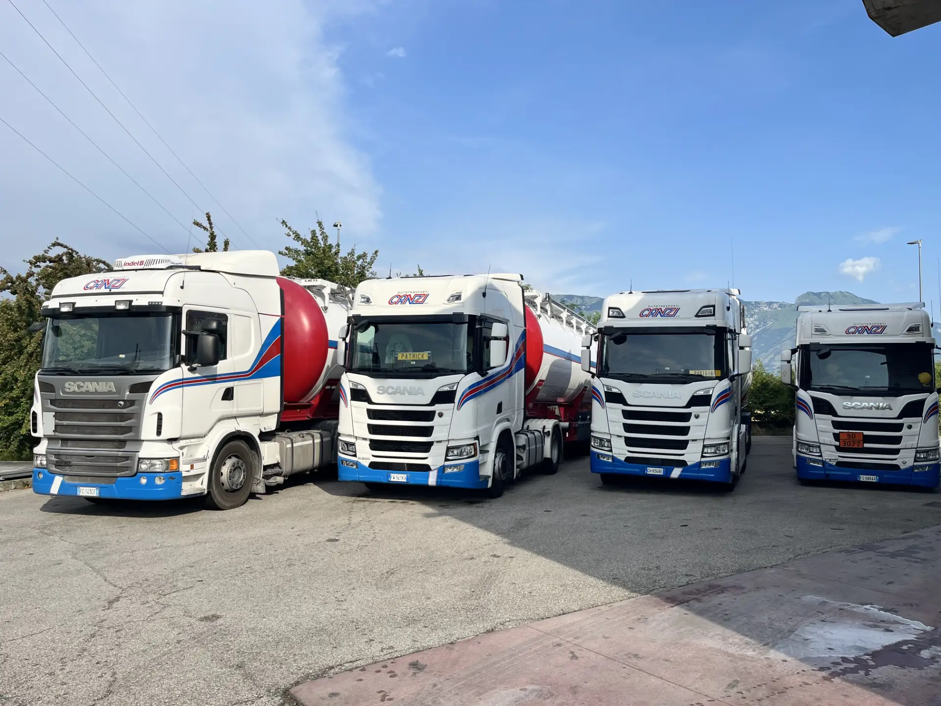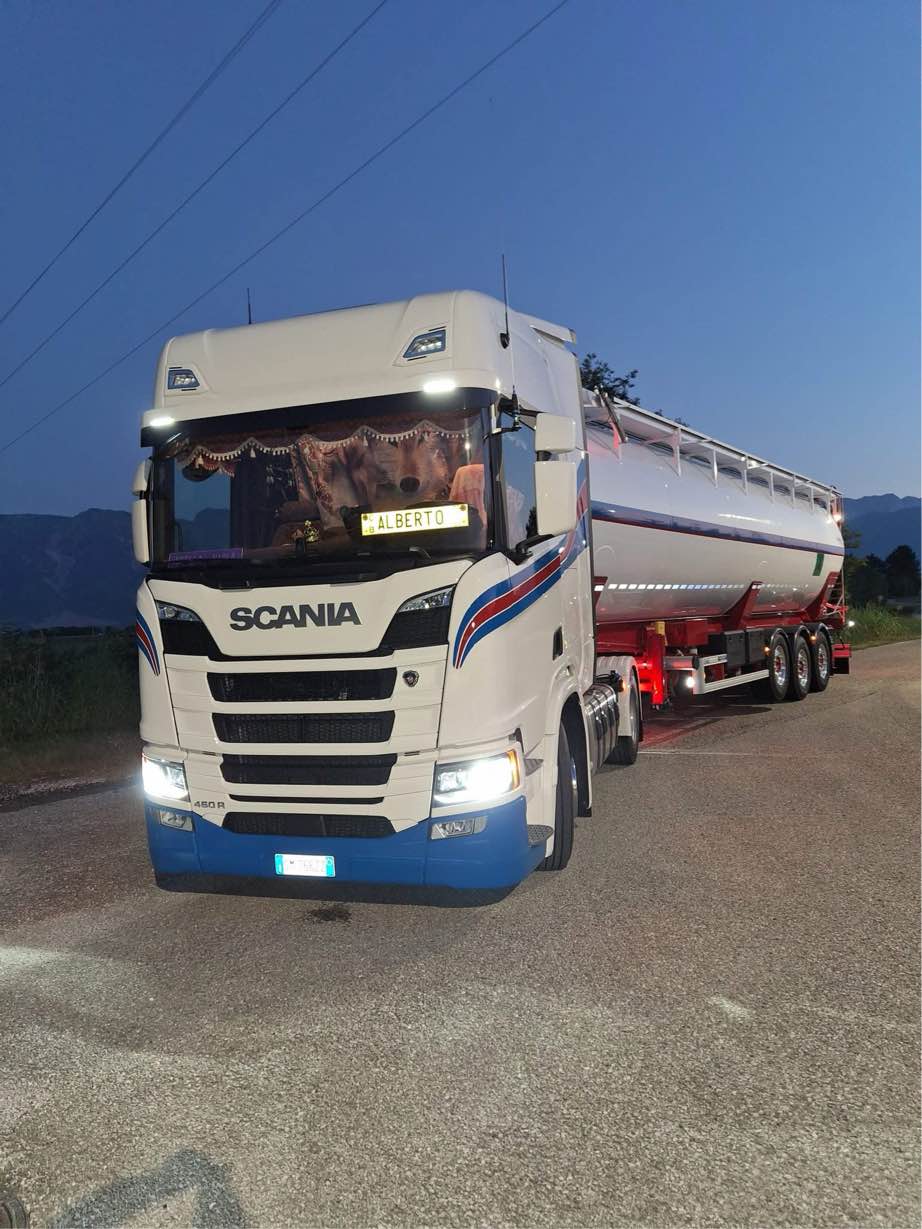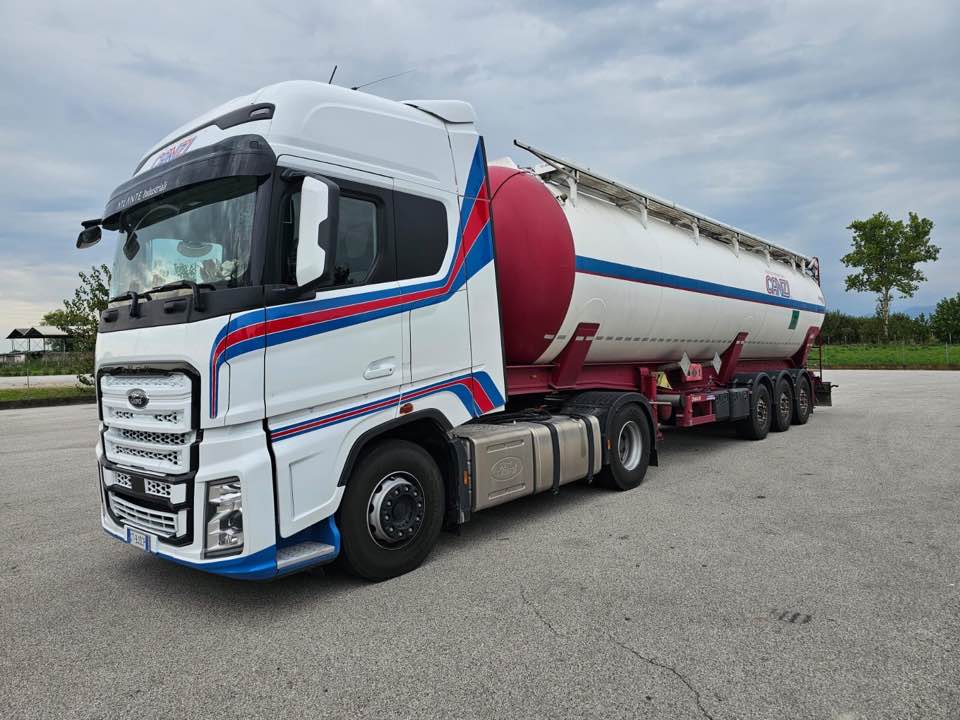 Attualmente disponiamo di 15 autoarticolati con cisterne ribaltabili e fisse e di 4 semirimorchi di scorta, parte dei quali abilitati al trasporto ADR.